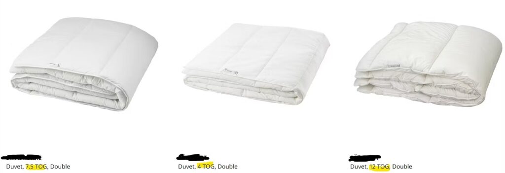 Le TOG est une unité anglaise de mesure de la performance thermique des vêtements et accessoires (1clo = 1,55TOGs). Cette unité est beaucoup utilisée par les Anglais pour qualifier thermiquement les vêtements pour bébé, certains vêtements techniques ainsi que les couettes. Si vous allez sur le site anglais d’une grande marque suédoise d’ameublement vous verrez que les « duvet » (couettes en anglais) sont caractérisés par des « TOG » ce qui est pratique car des tableaux permettent de savoir exactement quelle couette choisir pour une température de chambre donnée. Idem pour les vêtements. Alors que le même site dans sa version française précise « légère », « chaude »… ce que ne veut pas dire grand chose, surtout si l’on souhaite comparer des produits de marques différentes entre eux.