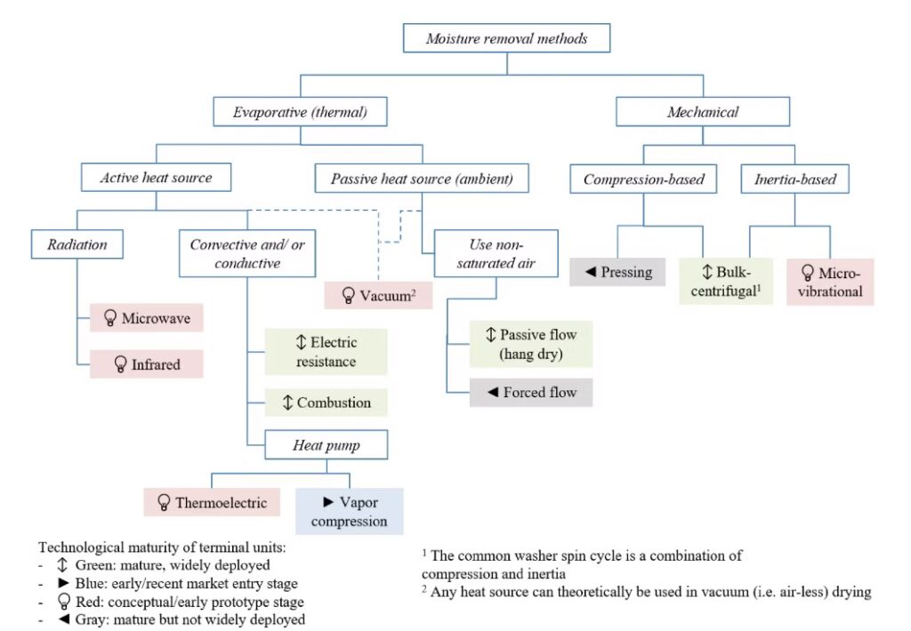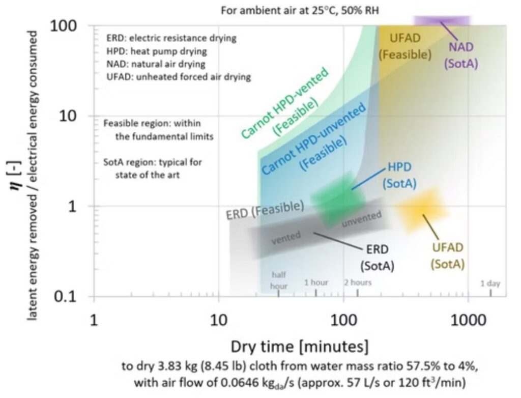 source: Kyle R. Gluesenkamp, Viral K. Patel & Ayyoub M. Momen (2020) Efficiency limits of evaporative fabric drying methods, Drying Technology, 39:1, 104-124, DOI: 10.1080/07373937.2020.1839486