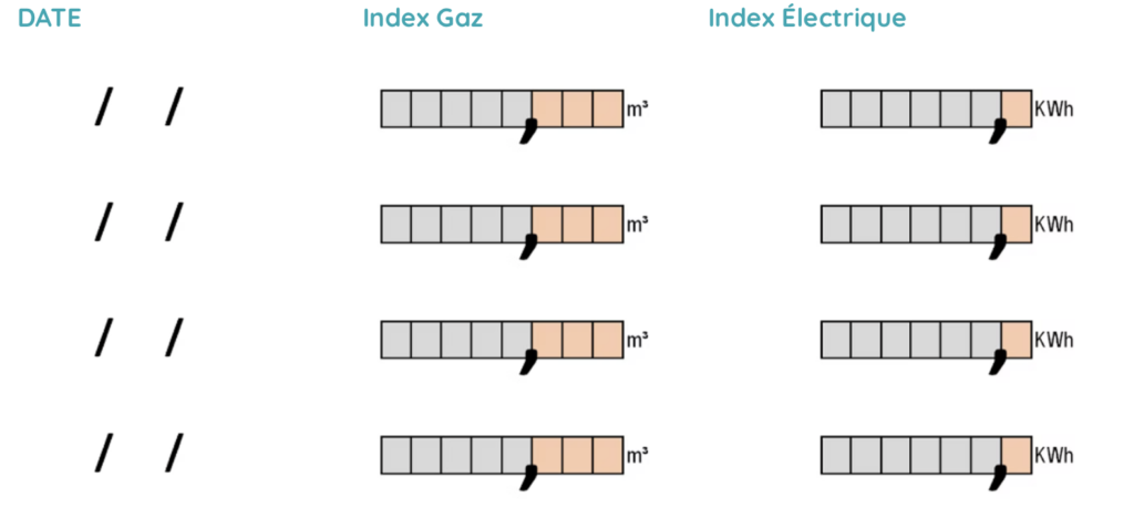Commencez dès à présent la constitution de cette historique en reprenant les indexes énergétiques qui figurent sur vos factures depuis votre emménagement dans le bien actuel. Ils pourront vous servir de base de comparaison pour la suite. Notez ensuite l’index actuel que vous lisez sur vos compteurs à la date d’aujourd’hui. Si vous êtes plusieurs, vous pouvez choisir d’attribuer ce rôle à l’un de vous. Ce dernier pourra vous faire un petit débriefing hebdomadaire ou mensuel des progrès ! Chouette non ?